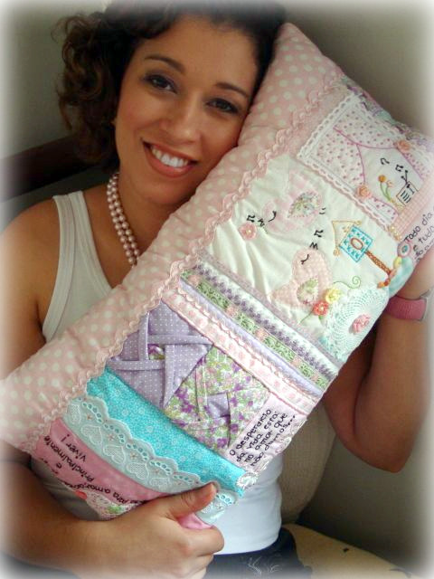 Não tenho palavras para descrever a emoção de ver meu travesseiro pronto! Tá maravilhoso! Muuuuuuuuuuuuuuuuuuuito mais do que eu imaginava que ficaria! Obrigada Mi pelo carinho que senti em cada bordado, florzinha, combinação de cores e que Deus possa abençoar o seu talento e multiplicar seus dias, para que vc continue fazendo muita gente feliz, COMO EU! Beijão no coração!